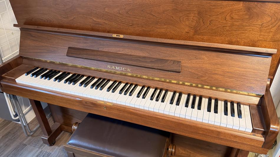 Ich verkaufe mein wenig bespieltes Samick Klavier in schönem Braunton. Es wurde einmal professionell gestimmt im Jahr 2020. ich gebe es nun ab, da ein Auszug ansteht und ich zu selten gespielt habe. Alle Tasten und Pedale funktionieren einwandfrei. Ein Hocker ist auch dabei.Maße 118x149x60