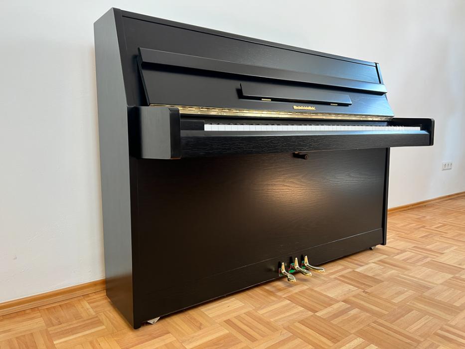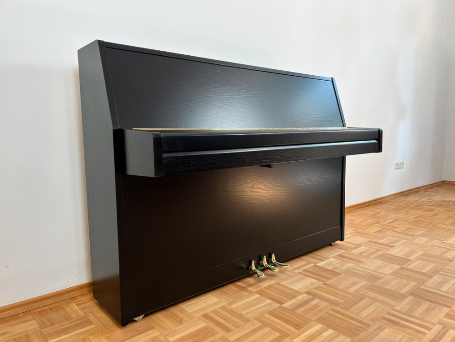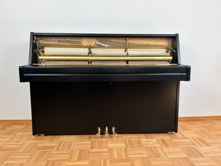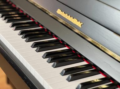 Mit seiner kompakten Größe passt das SAMICK 105 cm perfekt in kleinere Räume, ohne an Klangvolumen oder Spielkomfort einzubüßen. Das klassische Design in Schwarz satiniert verleiht dem Instrument eine zeitlose Eleganz, die sich nahtlos in jede Umgebung einfügt.