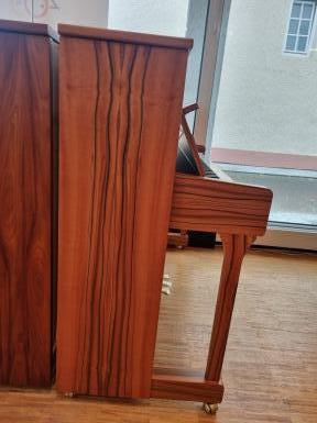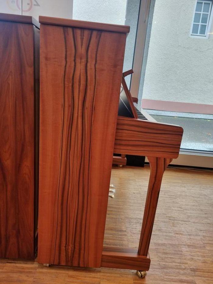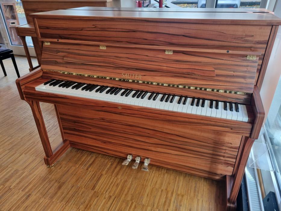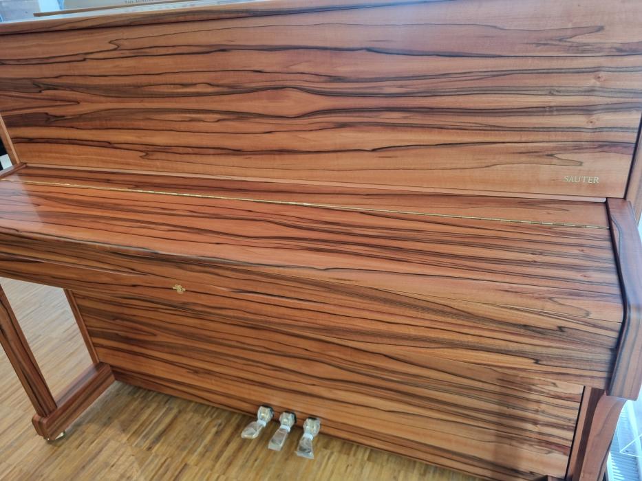 INDISCHER APFELBAUM, SAUTER Piano 116cm, ein Traum von einem Furnierbild. Absolut außergewöhnliches Holz in Verbindung mit einem hervorragenden Piano: sehr angenehme Spielart, lang tragender Ton durch den sphärischen Resonanzboden, made by Sauter, made 100% in Germany. \nMit der zuverlässigen Renner Mechanik, made in Germany. \nIm Preis enthalten:\n- Lieferung deutschlandweit\n- Gestimmt geliefert \n- 1 Gratisstimmung nach Klimatisierung von Jan Seela \n- 5 Jahre Garantie \n- 1 Klavierbank in der passenden Farbe\nVereinbaren Sie einen Termin zum Anspielen in unserem Klavierhaus.Preis regulär: € 15.490,--