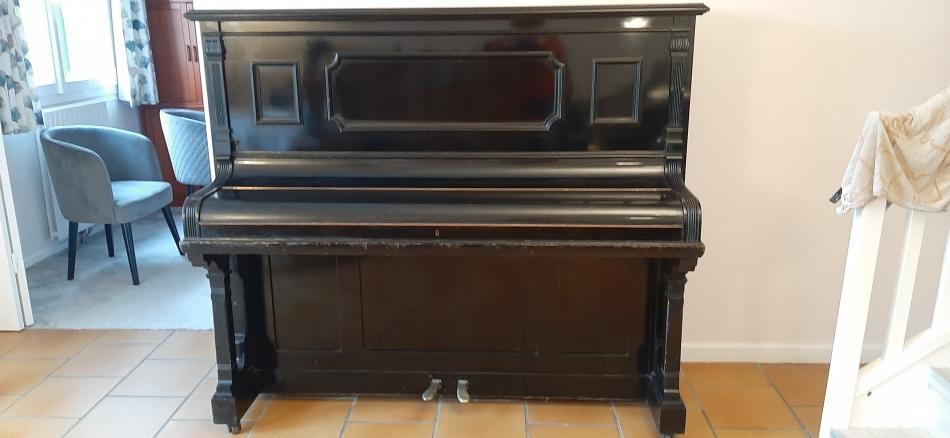 Piano droit Schiedmayer laqué noir, touches ivoire, datant de 1900. Accordé en 2022. NBon état, le laque est usé/endommagé par endroits. ous habitons en Ile de France (Yvelines).Upright Schiedmayer piano, black laqueur finish, ivory keys, dates from 1900. Tuned in 2022. Good condition, the laqueur surface is damaged/worn out in places. We live in Ile de France (Yvelines).