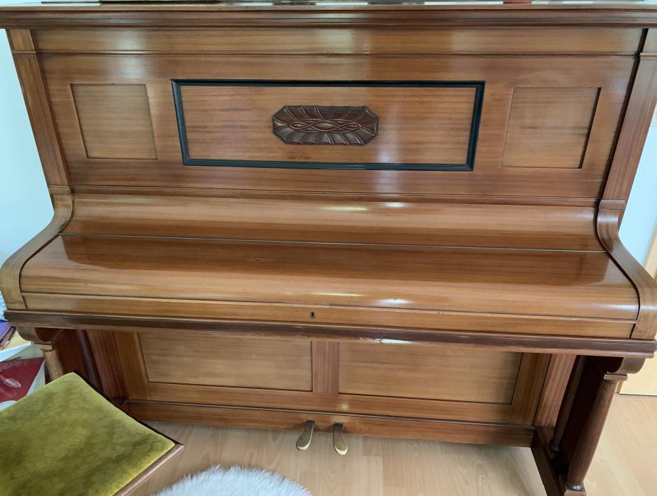 Schiedmayer Klavier, Baujahr circa 1908, Mahagoni, letzte Stimmung 2022 durch Fachmann, normale Abnutzung durch Gebrauch, kleine bereits 1987 reparierte Stelle auf dem Klavierdeckel (Schaden durch Transporteure).Hocker inklusive.