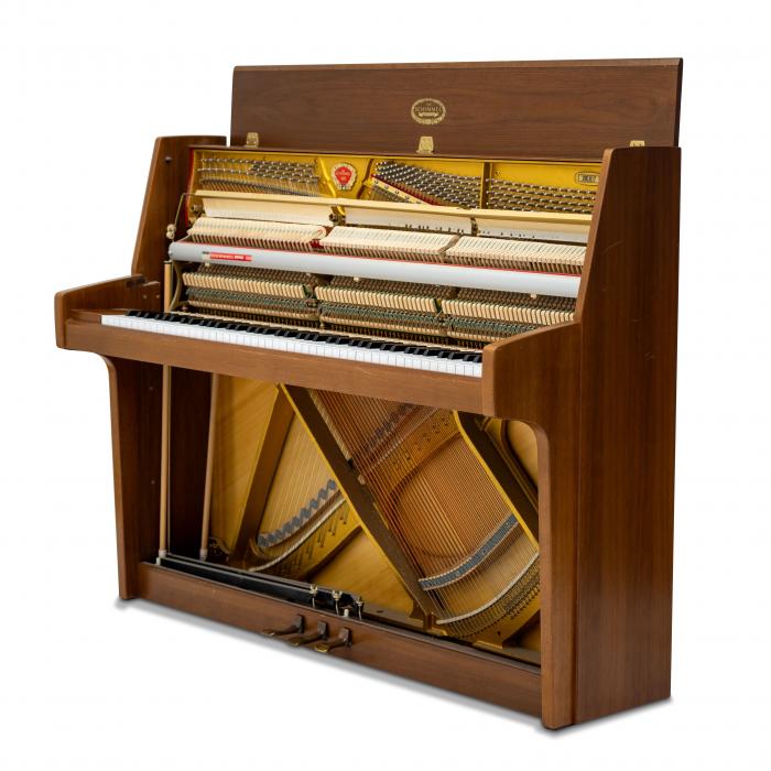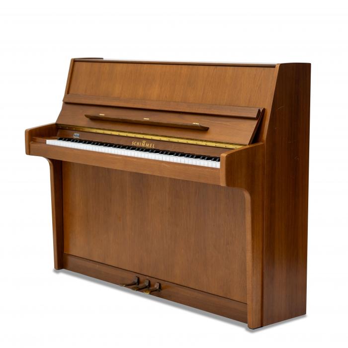 Produktbeschreibung:\nDas Schimmel Modell 113 Klavier in edlem Nussbaum Satiniert vereint klassische Eleganz mit exzellenter Klangqualität. Sein warmes Holzfinish und die geschmeidige Oberfläche verleihen jedem Raum eine ansprechende Atmosphäre.\n\nKlang und Spielart:\nDas Klavier erzeugt einen warmen und ausgewogenen Klang mit klaren und präzisen Tönen. Die Spielart ist leichtgängig und reaktionsschnell, was ein angenehmes Spielerlebnis für Pianisten aller Niveaus ermöglicht.\n\nDesign und Verarbeitung:\nDas Schimmel Modell 113 besticht durch sein zeitloses Design und seine hochwertige Verarbeitung. Das Nussbaum Satiniert Finish verleiht dem Klavier eine natürliche Schönheit und...