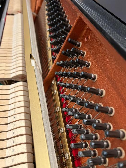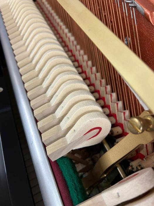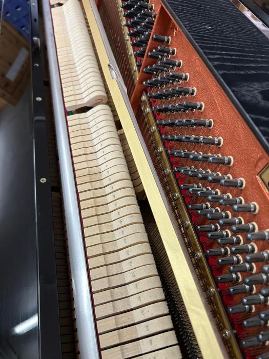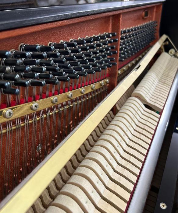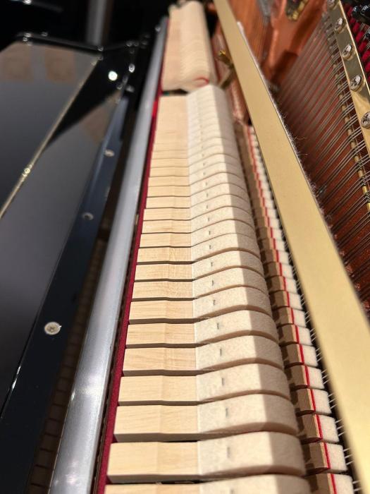 Weitere Informationen: Das Instrument ist aus 1. Hand. In unserer Fachwerkstatt wurde die Mechanik sorgfältig und genau reguliert. Die Hammerköpfe wurden abgezogen. Ebenfalls sind das schwarze Gehäuse, die Tasten, sowie alle Messingteile poliert worden.
