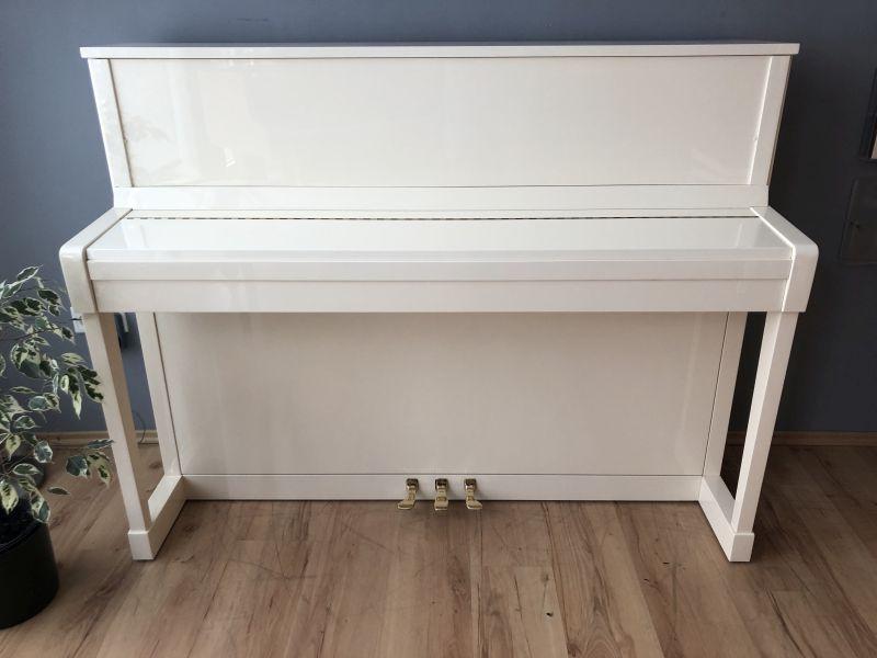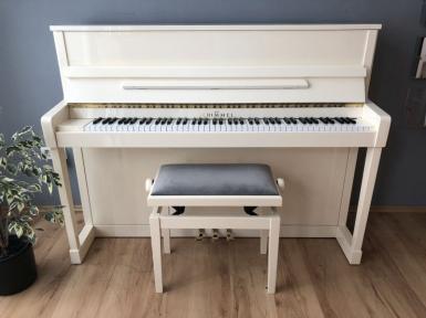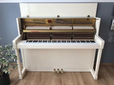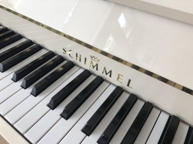 Zum Verkauf steht ein top gepflegtes Klavier Modell 116 S des Traditionsherstellers Schimmel in cremeweiß poliert.