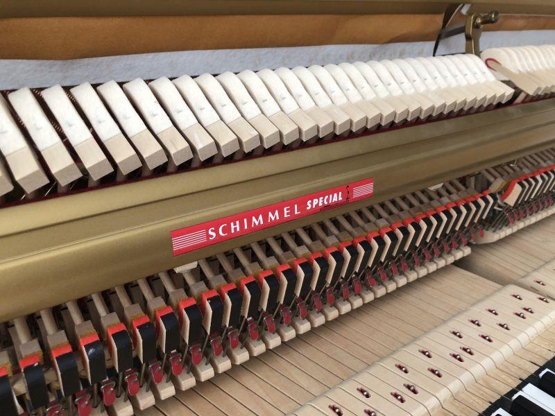 Das Klavier ist komplett in Deutschland gefertigt, ist mit einer hochwertigen SCHIMMEL - Mechanik und einer Klaviatur aus deutscher Fertigung ausgestattet und entspricht somit bis auf die Mechanik der hochwertigsten Serie von Schimmel. Durch eine Zusammenarbeit mit Yamaha sind Schimmel Klaviere dieser Zeit oftmals mit einer SCHIMMEL Spezial Mechanik ausgestattet. Diese ist von Ihrer Konstruktion her sehr an die robusten Mechaniken von Yamaha angelehnt und zeichnet sich durch eine sehr leichtgängige Spielart aus. Ein Mechanikbalken aus Aluminium macht diese Mechaniken...