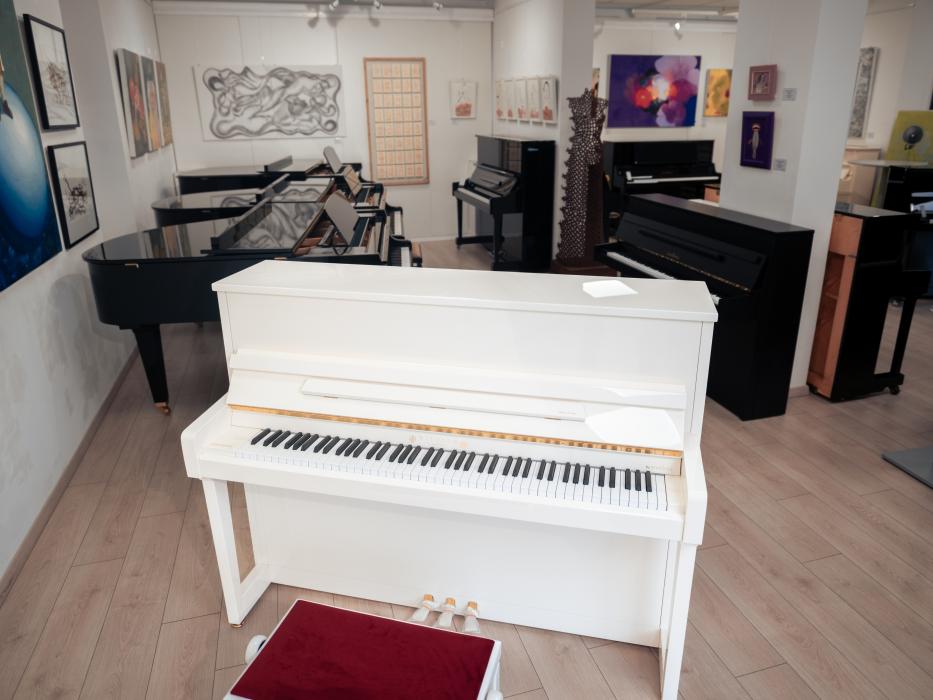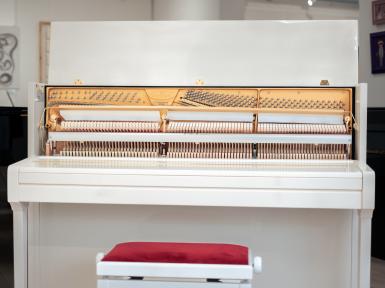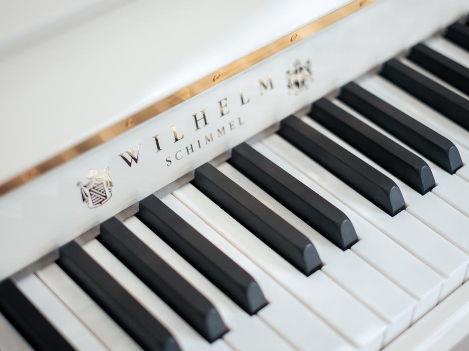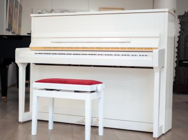 Wilhelm Schimmel Klavier, Neuinstrument, weiß poliert, Modell W114 Tradition.