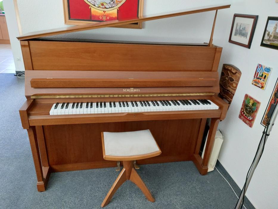 Klavier: Klavier/Piano Schimmel Mod. 118 T Nussbaum Bj. 1981, wenig bespielt. Erwarten Sie ein hervorragend verarbeitetes Klavier (Bj. 1981) mit der Klangfülle und Kraft eines Flügels (Bass-Saiten > 120 cm); B ~ 160 cm; H 128 cm, Renner-Mechanik, in Braunschweig produziert; aus erster Hand, wenig bespielt, regelmäßig gestimmt, mit Gondelsessel. Moderator Pedal für leiseres Spielen. Ein klangvolles Klavier der Oberklasse. Aus Platzgründen trennen wir uns von diesem hervorragend verarbeiteten Klavier aus einem Nichtraucher-Haushalt. Das Klavier stand an einer Innenmauer in einem Raum, der immer eine gleichmäßige Temperatur hatte. Das Klavier steht im EG, bei Abholung sind somit keine...