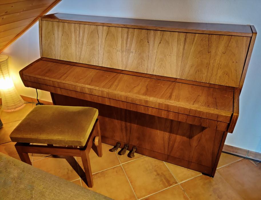 Das Klavier wurde circa 1998 erstanden, einige Jahre viel bespielt und regelmäßig gestimmt & gewartet, die letzen 20 Jahre war es aber hauptsächlich ein Möbelstück. Letztes Jahr wurde das Klavier wieder in Betrieb genommen, fachmännisch gestimmt & justiert sowie ein 'Meyne Luftbefeuchter' Stab nachgerüstet. Technisch ist das Klavier in einem sehr guten Zustand. Optisch sieht man der Holzverkleidung die Jahre an, wäre aber sicherlich zu restaurieren.