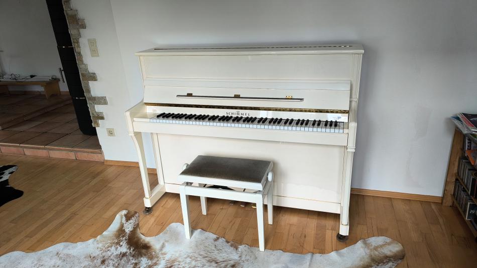 Verkaufe mein weißes Schimmel Klavier mit passendem Hocker.