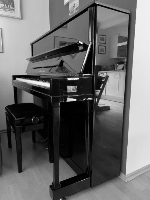 Gebrauchtes Klavier, schwarzer Hochglanz Klavierlack, wenig gespielt, so gut wie neuwertig, ca. 18 Jahre alt, von privat zu erwerben. Auf Wunsch kann der Klavierstuhl ebenfalls erworben werden.