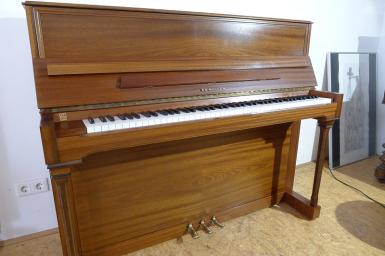 Ein edles Klavier aus Kitzingen kommt hier als gepflegter Erstbesitz in den Verkauf. Gehäuse aus ansprechendem Nußbaumholz. ( Es muß ja nicht immer nur schwarz hochglanz sein. Rennermechanik und bestes Klangholz.