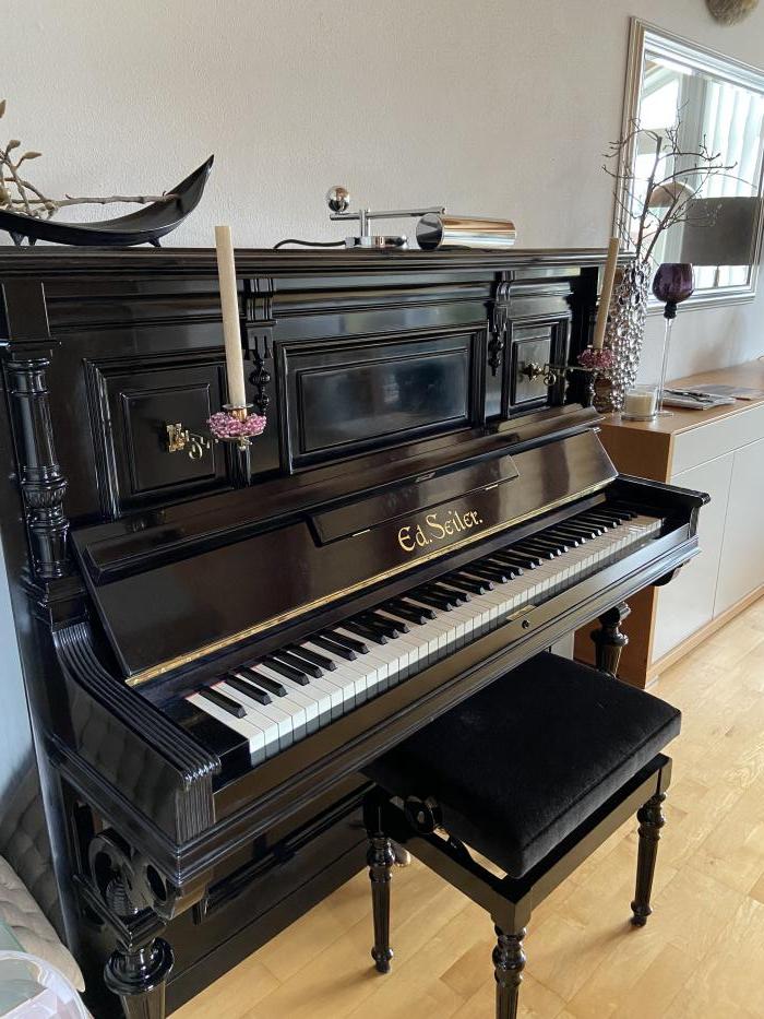 Antikes , wunderschönes Ed Seiler Klavier in TOP ZUSTAND! Das Piano stammt aus Baujahr 1899 und wurde 2004 generalüberholt- das komplette Innenleben ist neu! Das Gehäuse ist schwarz Schellack poliert, Tastatur original (Elfenbein). Zu der Ausstattung gehört eine Klavierbank und ein Hydroceelstab. Das Klavier wurde trotz geringer Benutzung regelmäßig gestimmt und der Hydroceelstab für die perfekte Feuchtigkeit immer verwendet. Auch die Bauhaus-Klavierleuchte „De Stijl“ von Tecnolumen (Neupreis etwa 680 Euro) ist im...