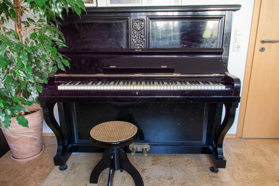 Das Klavier verfügt über eine originale Elfenbeinklaviatur (Verkaufsgenehmigung liegt selbstverständlich vor) und wird zusammen mit einem passenden Sitzhocker abgegeben.