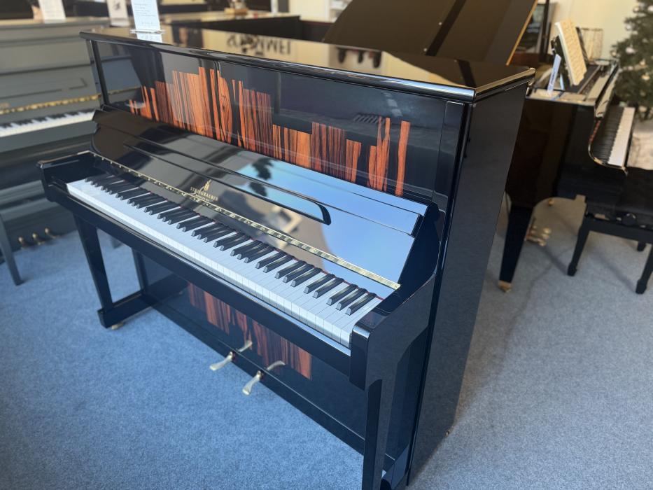 Mit einer Höhe von 122 cm entfaltet das Klavier einen klaren, warmen und differenzierten Klang – kraftvoll in den Bässen, strahlend in den Höhen und reich an harmonischen Obertönen. Die fein abgestimmte Mechanik ermöglicht ein sensibles Spiel, präzise Kontrolle und nuancierten Ausdruck in allen Dynamikbereichen.