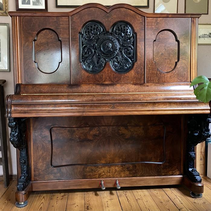 Steingraeber Piano Nr. 2695, Baujahr ca. 1866. Das Instrument wurde 2004/5 hochwertig aufgearbeitet und mit einer neuen Petrof-Mechanik versehen. Da es seit einiger Zeit nicht mehr bespielt wird, bieten wir es jetzt zum Verkauf an.Für eine Besichtigung steht es natürlich gern zur Verfügung.
