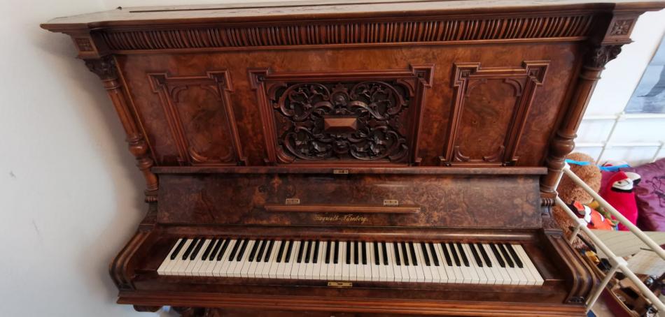 Dekoratives ehem. Konzert-Pianino von Steingraeber und Söhne (Nr. 7381) für Liebhaber oder Sammler. Baujahr 1896.Es war 40 Jahre bei uns im Haus, wurde jetzt allerdings länger nicht mehr bespielt, muss gestimmt werden.