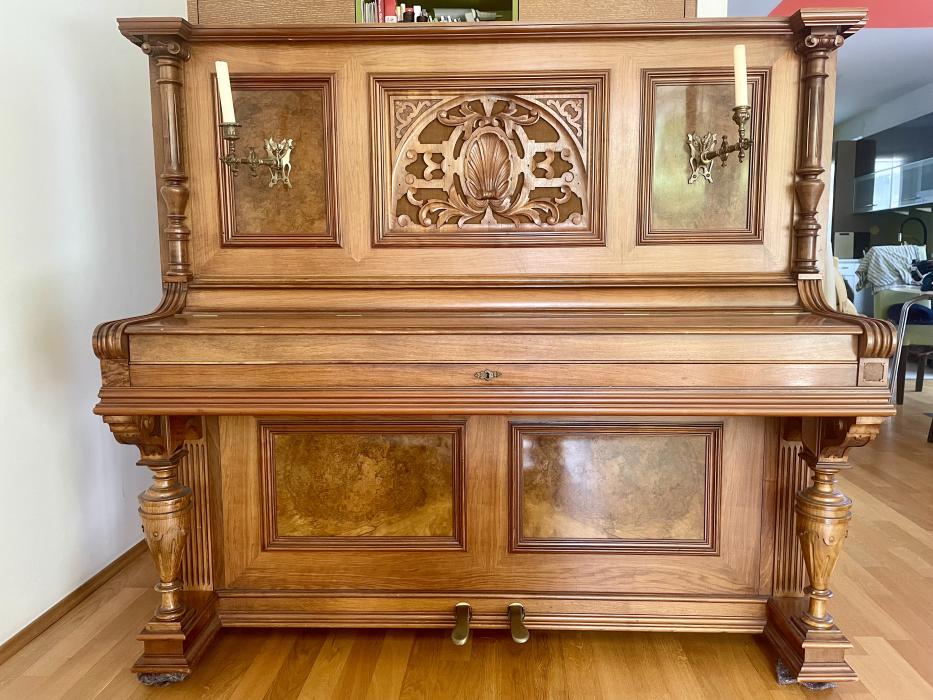 Klavier der Marke "Steingraeber & Söhne"- Schnitzereien und Kerzenhalter