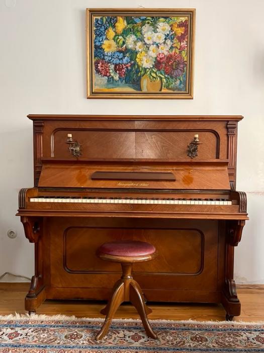 Steingräber & Söhne Klavier - zu verkaufenVerkaufe ein hochwertiges Steingraeber & Söhne Klavier aus Nussbaum (Nummer 8097), Baujahr ca. 1898. Es ist ein Oberdämpfer, ein Viertel ton tiefer gestimmt. Originale Kronleuchter noch erhalten - sehr selten! Wurde kürzlich vom Profi gestimmt.