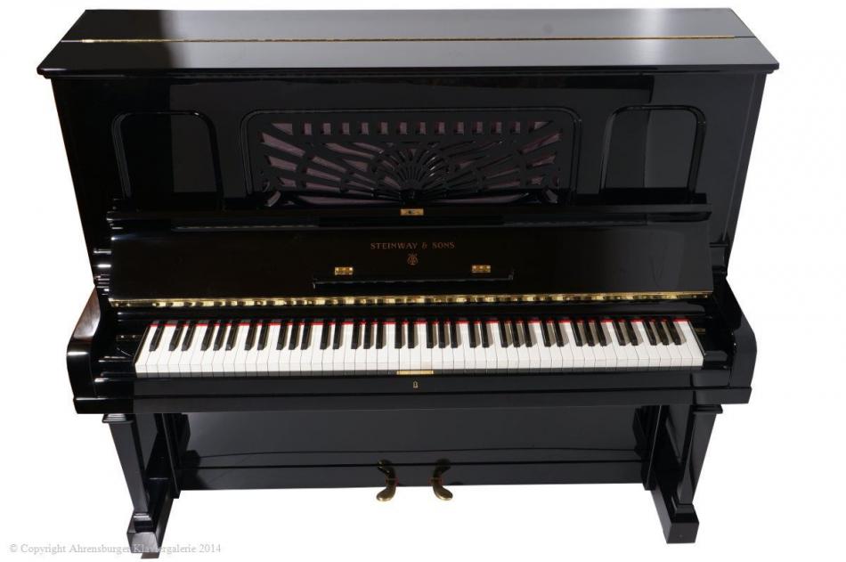 Steinway& Sons Hamburg Modell K 132 schwarz poliert Art Deco Jugendstil Oberrahmen