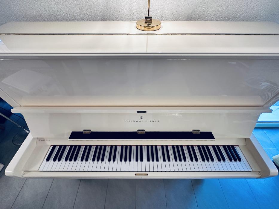 Klavier der Marke STEINWAY / Modell K-132 in der Farbe Weiss poliert, Baujahr 2009 (gekauft Mai 2010).