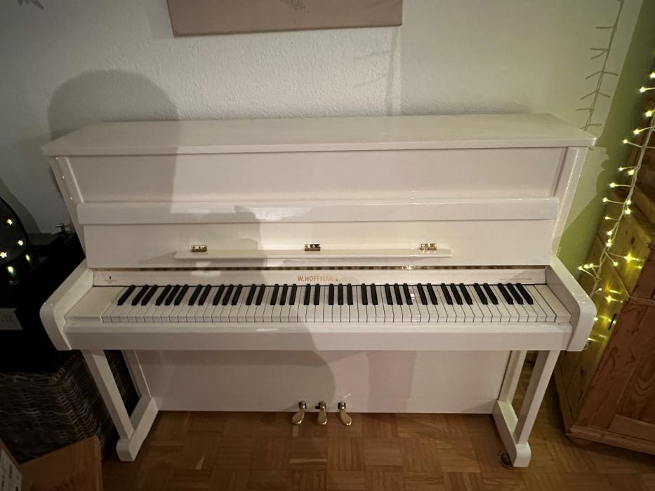 Bei dem Klavier handelt es sich um ein W. Hoffmann 112V aus dem Jahr 2011. Es ist weiß poliert und kaum bespielt. Abgesehen davon, dass es gestimmt werden müsste, sind keine Schäden, Macken o.ä. am Klavier vorzufinden. Es hat drei Pedale. Das Klavier steht in einem nicht Raucher Haushalt in Essen.Bei Interesse können gerne weitere Bilder und Informationen gegeben werden. Der Transport wäre in dem Preis inklusive.