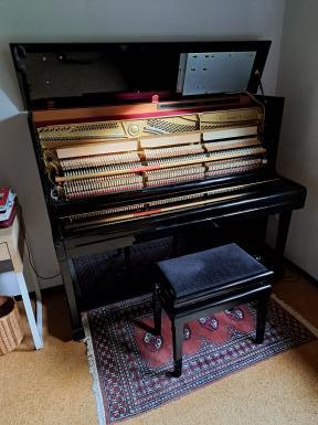 Wegen Umzug muss ich dieses klangvolle Instrument (127cm.Höhe) Neupreis c.a. 18000 Euro verkaufen.Eine ausgeklügelte Technik sorgt dafür, dass sowohl die Tasten- als auch die Pedalbewegungen detailgetreu...