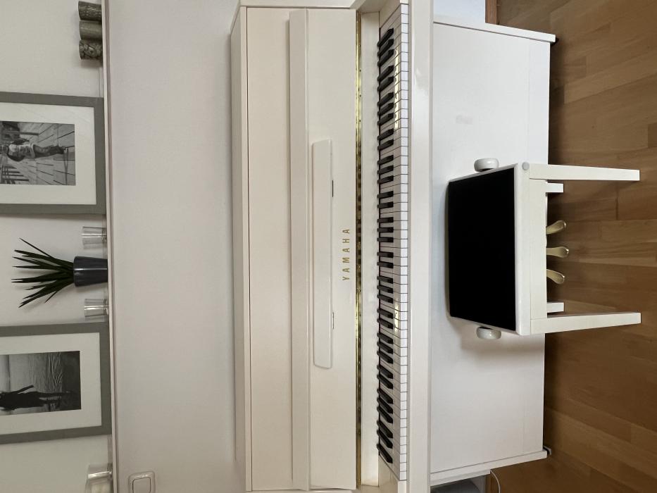 Yamaha Klavier B1 weiß poliert.Sitzbank im Wert von 249 Euro geben wir mit dazu.