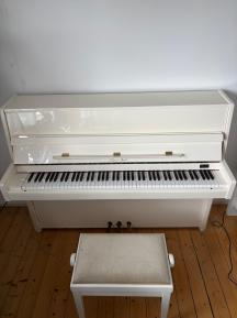 Pianino aus Nussholz mit weißem Hochglanz-Finish und ausgewogenem Klang der Marke Klug & Sperl (Instrumentennummer 6874, MS 110). Ideal für Anfänger und ...