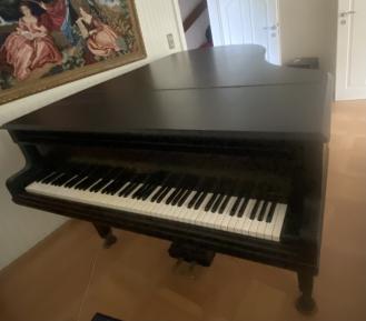 Schwarz matt, 2 m lang und 1,48 m breit, 2 Pedale, 52 weiße Tasten und 36 schwarze, Serien-Nr. 9196, Baujahr 1889, Gebraucht. Selbstabholung. Familienbesitz ...