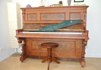 Zum Erwerb steht ein Trautwein Berlin Klavier mit der Serien Nr. 20366. Nussbaum mit Wurzelholz und Schnitzereien in den Kassetten und einer original ...