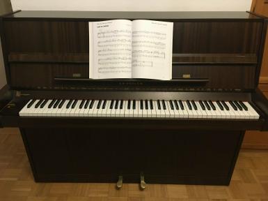 Angeboten wird ein gepflegtes dunkelsatiniertes Klavier mit schönem Klang: