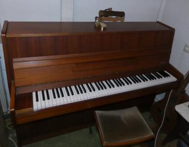 Das Klavier der finnischen Marke Hellas ist ca. 40 Jahre alt, hat einen wunderbaren Klang und lässt sich gut spielen.