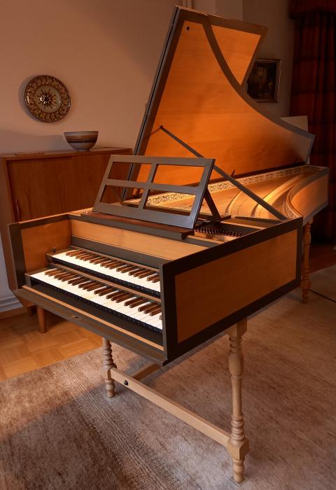 Cembalo aus Altersgründen zu verkaufen. Das hochwertige Instrument wurde regelmäßig von mir gespielt, hat einen vollen schönen Klang und wurde von einem Cembalobauer betreut; es hat kaum Gebrauchsspuren.Fabrikat Sassmann, Baujahr 1980, zweimanualig in flämischer Bauweise nach Ruckers, 4 1/2 Oktaven, Manual I 8', 4', Manual II 8´, mit Lautenuug und Koppel. Länge 225 cm, Breite 79 cm. Ab Hamburg, kein Versand.