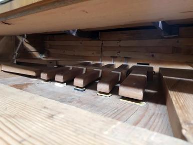 Das Hebelwerk der Pedale wurde gängig gemacht, der Fagottzug mit neuem Pergament/Leder/Stoff bezogen und alle Pedalfunktionen reguliert.