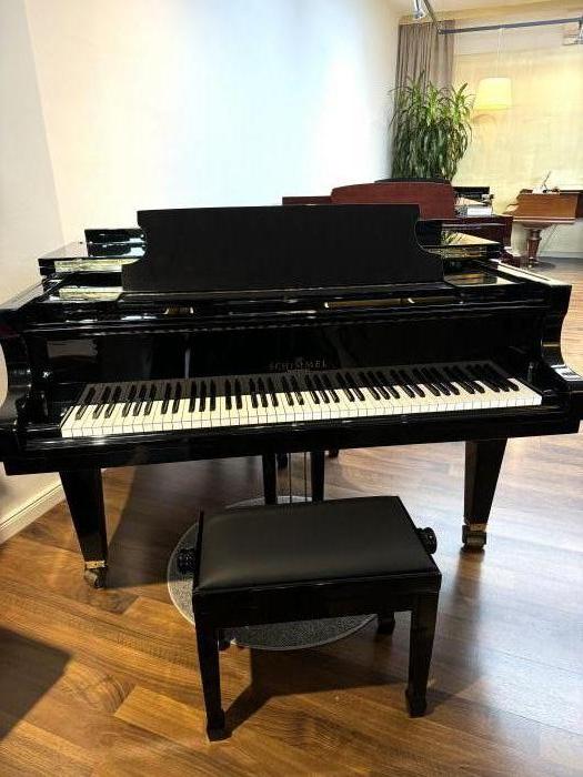 Moderner Salonflügel der Marke Schimmel, in Braunschweig gefertigt,\nMod. 208 cm, Baujahr 1984/85, in schwarz poliert, aus Erstbesitz mit kleinen Gebrauchsspuren. Ein sehr robustes und stabiles Instrument für Musikschulen, kleine Bühnen und auch andere Institutionen geeignetproduct range