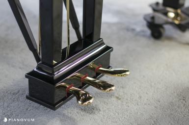 Der Flügel stammt aus Privatbesitz und wurde technisch in unserer Meisterwerkstatt überholt. Die Polyesterlackierung ist weitgehend original, nur die Beine wurden neu lackiert, der restliche Korpus penibel aufpoliert. Die Messingrollen wurden durch neue Originale ersetzt. Die...