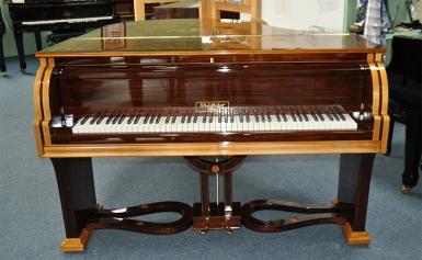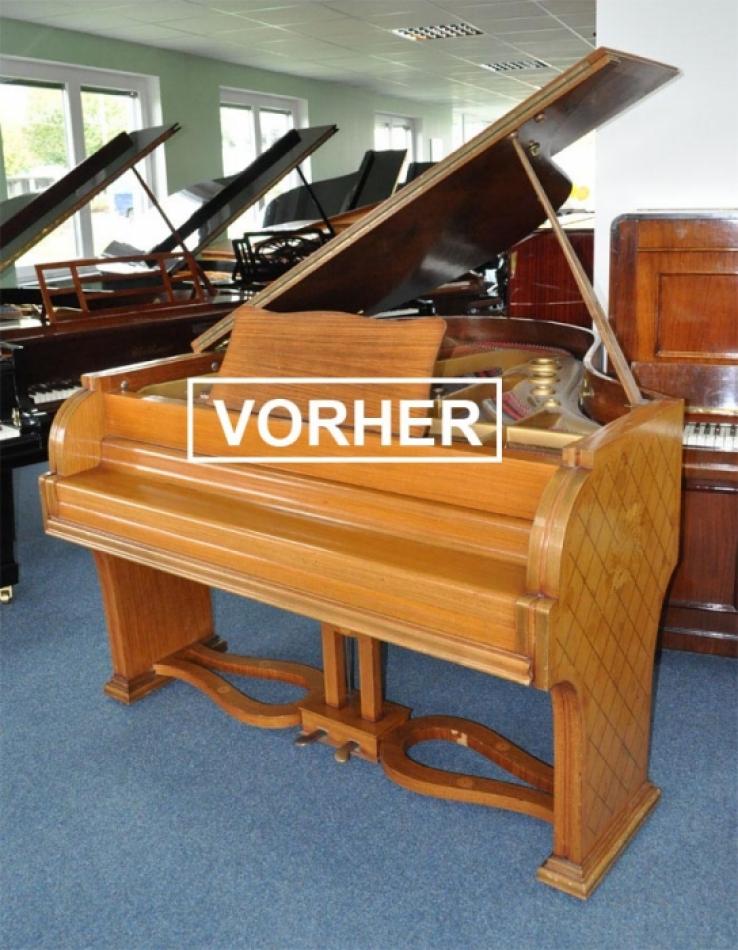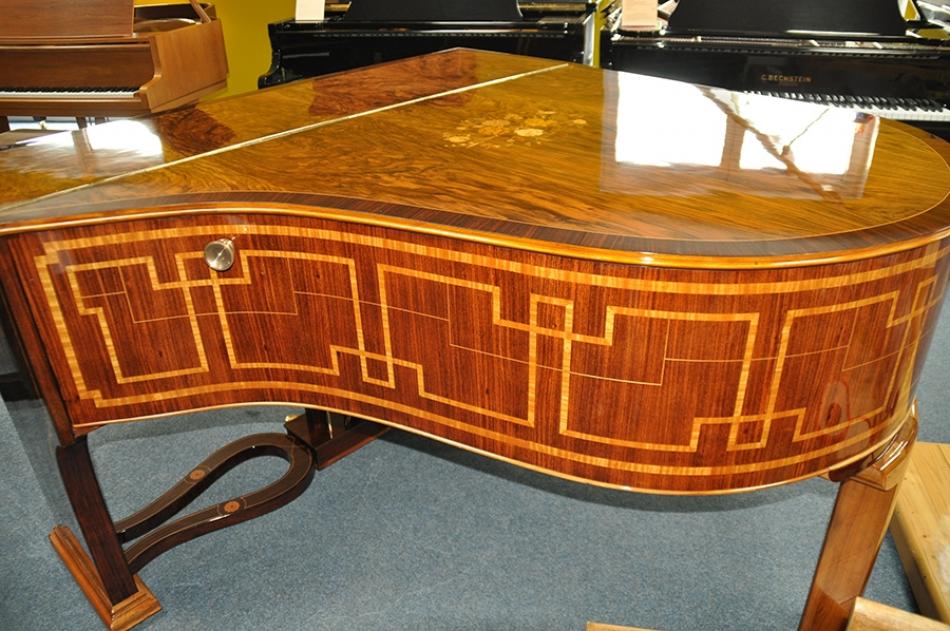 Weitere Informationen: Wohlfahrt präsentierte diesen Flügel auf der Titelseite ihres Prospektes. Wir sind sehr stolz einen dieser Flügel anbieten zu können. Er wurde neu mit Schelllack poliert, hat Nussbaum-Palisander Intarsien.