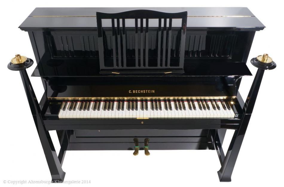 C. Bechstein Konzertklavier Modell 132 Art déco schwarz poliert Leuchterkonsole