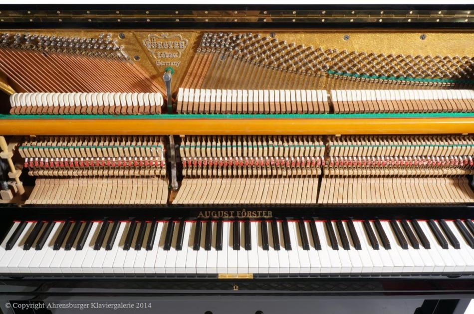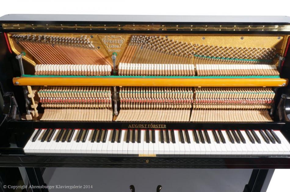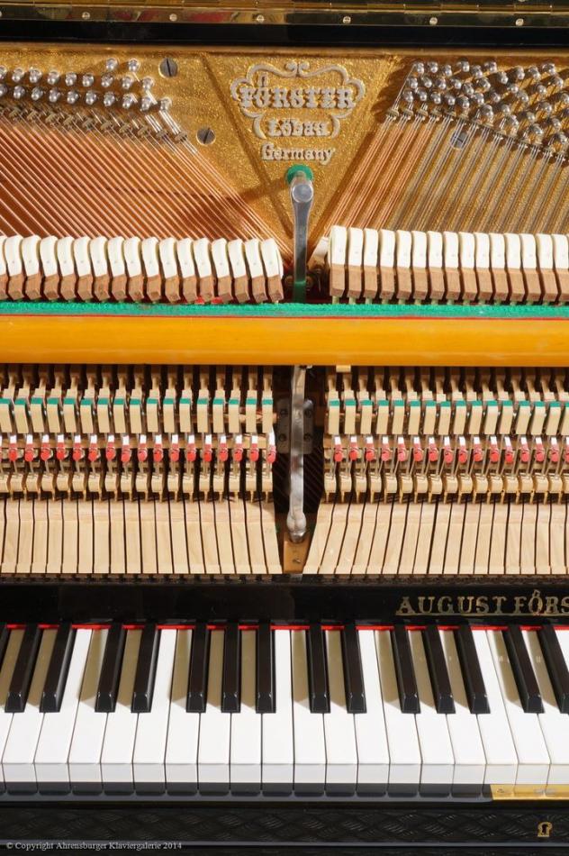 Die August Förster Instrumente aus Löbau in Sachsen zählen heute zu denen besonders traditionsbewusster Klavier- und Flügelmanufakturen weltweit, sie sind seit 150 Jahren bis heute in Musikerkreisen sehr beliebt. Dort, wo ein warmer, langer, tragender Ton, insbesondere für klassische und spätromantische Kammermusik, aber auch für Jazz- Balladen, geschätzt wird. Die Stimmhaltung und Resonanzeigenschaften dieser Instrumente werden durch eine minutiös und raffinierte Verarbeitung hochwertiger, jahrelang gelagerter Qualitätshölzer, ermöglicht. Insbesondere das Klavier Modell 120 mit klassischer Konsole, aus den sechziger Jahren, ist ein herausragender Vertreter, eines der besten Klaviere die jemals gebaut worden sind (es wird bis heute in Löbau gefertigt)!