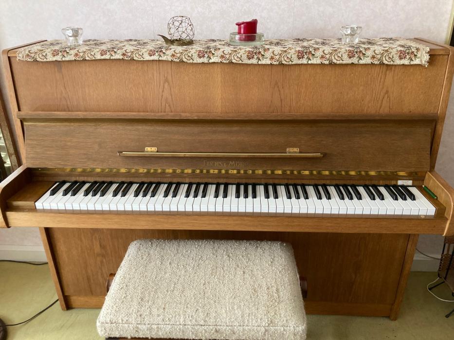 Das neuwertige und kaum gespielte Fuchs & Möhr Klavier, Höhe 110cm Breite 140cm Tiefe 51cm, steht bei meiner Mutter, einer Geigerin, in Aachen und wird nicht mehr gebraucht. Es wurde lediglich ein paar Mal zum Üben mit einer Pianistin, zum Quartettspiel bzw. vor Konzerten gebraucht.