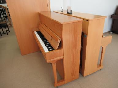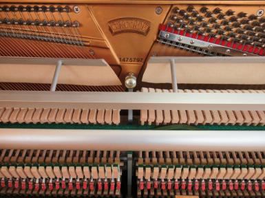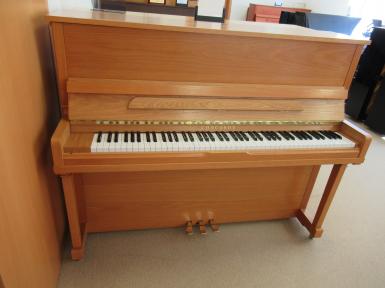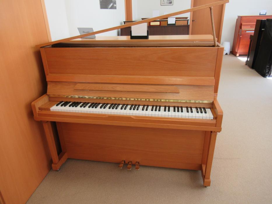 europäische Modellreihe, hergestellt in Korea für IBACH zum Vertrieb in Europa. Beliebtes Klavier aus erster Hand in der klassischen Gehäuseform mit höherem Spieltisch, breitem Notenpult und auf Rollen. Mit Flügeldeckel für bessere Klangabstrahlung! Großes Klangvolumen und direkte Spielart für gute Dynamik. Baujahr 1990. Mit 3. Moderatorpedal für leiseres Spielen,