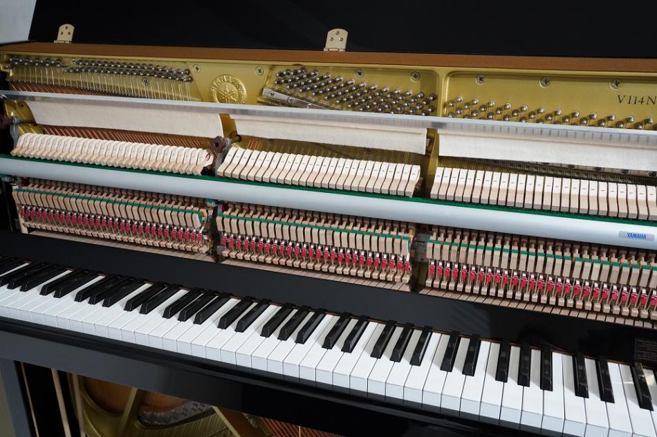 Yamaha V114 schwarz Hochglanz poliert\n\nSehr gepflegtes Yamaha V114 Klavier Baujahr 2000. In unserer Hauseigenen Meisterwerkstatt wurde die Mechanik nachreguliert und die Oberfläche aufpoliert. Selbstverständlich erhalten Sie auch auf unsere Gebrauchten Klavier eine Garantie.\n\nHaben Sie Fragen oder Interresse? Sie könne uns gerne jederzeit telefonisch oder per E-Mail erreichen. Wir freuen uns auf Ihre Nachricht und gerne auch über einen Besuch in unserer Ausstellung!\n\nBei Kauf inkl. 1. Gratisnachstimmung - Lieferung frei Haus bis 100km, mehrkilometer auf Anfrage möglich.\n\nModell: V114\nBaujahr: 2000\nMechanik: Yamaha\nOberfläche: schwarz Hochglanz\nMaße: H: 114cm; B: 150,5cm;...