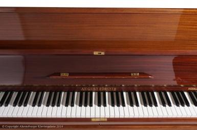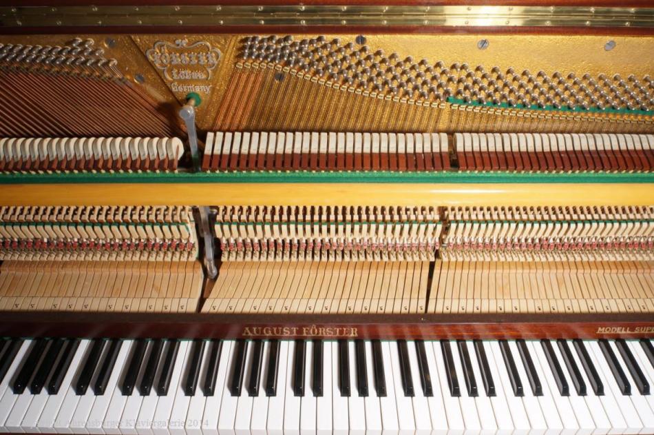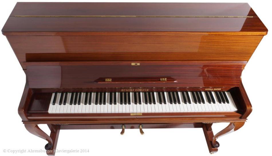 Die August Förster Instrumente aus Löbau in Sachsen zählen heute zu denen besonders traditionsbewusster Klavier- und Flügelmanufakturen weltweit, sie sind seit 150 Jahren bis heute in Musikerkreisen sehr beliebt. Dort, wo ein warmer, langer, tragender Ton, insbesondere für klassische und spätromantische Kammermusik, aber auch für Jazz- Balladen, geschätzt wird. Die Stimmhaltung und Resonanzeigenschaften dieser Instrumente werden durch eine minutiös und raffinierte Verarbeitung hochwertiger, jahrelang gelagerter Qualitätshölzer, ermöglicht. Insbesondere das Klavier Modell 120 mit klassischer Konsole, aus den sechziger Jahren, ist ein herausragender Vertreter, eines der besten Klaviere die jemals gebaut worden sind (es wird bis heute in Löbau gefertigt)!