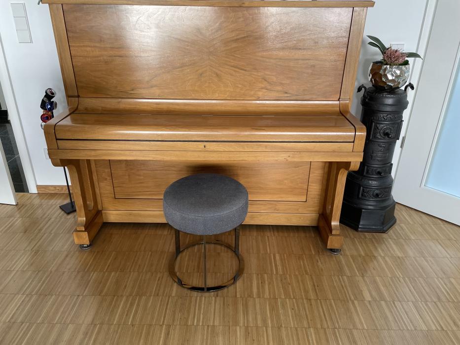Bei dem Klavier mit der Nummer 31847 handelt es sich um ein um 1925 gebautes Instrument von Zeitter & Winkelmann. Das Klavier - als kreuzverspannter Unterdämpfer gebaut - wurde zwischenzeitlich einmal mit Nussbaum Furnier versehen und ist erhaltungsmäßig in einem sehr ordentlichen Zustand. Es hat alterstypische Verschleißerscheinungen und ist zur zeit nicht gestimmt. Das klassische und sehr schlichte Gehäuse sowie die Elfenbeintastatur sind ebenfalls gut erhalten.Das Klavier befindet sich seit 50 Jahren in meinem Besitz und wird wegen Umzug angeboten.