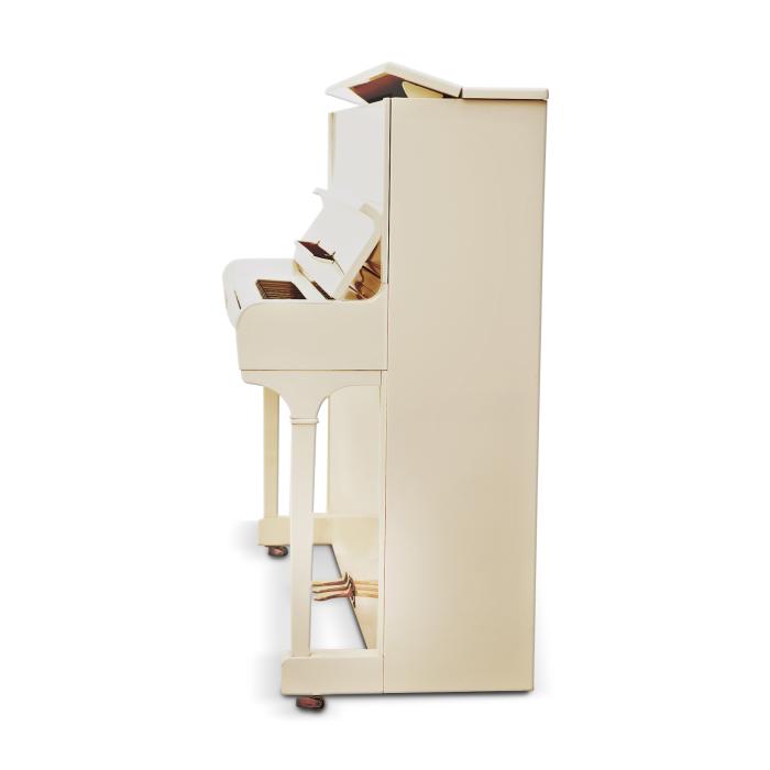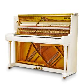 Sie sind auf der Suche nach einem optischen Glanzpunkt für Ihr Zuhause mit tollen musikalischen Fähigkeiten? Hier ist das Hupfeld Piano Modell 122 in klassisch poliertem Weiß, schicken Konsolen mit Kapitelverzierung und messingfarbenen Designelementen. Instrumente der Marke Hupfeld offerieren eine exzellente Bauart mit hochklassigen Konstruktionsmerkmalen, welche bei Rönisch in Leipzig entworfen und geprüft werden.