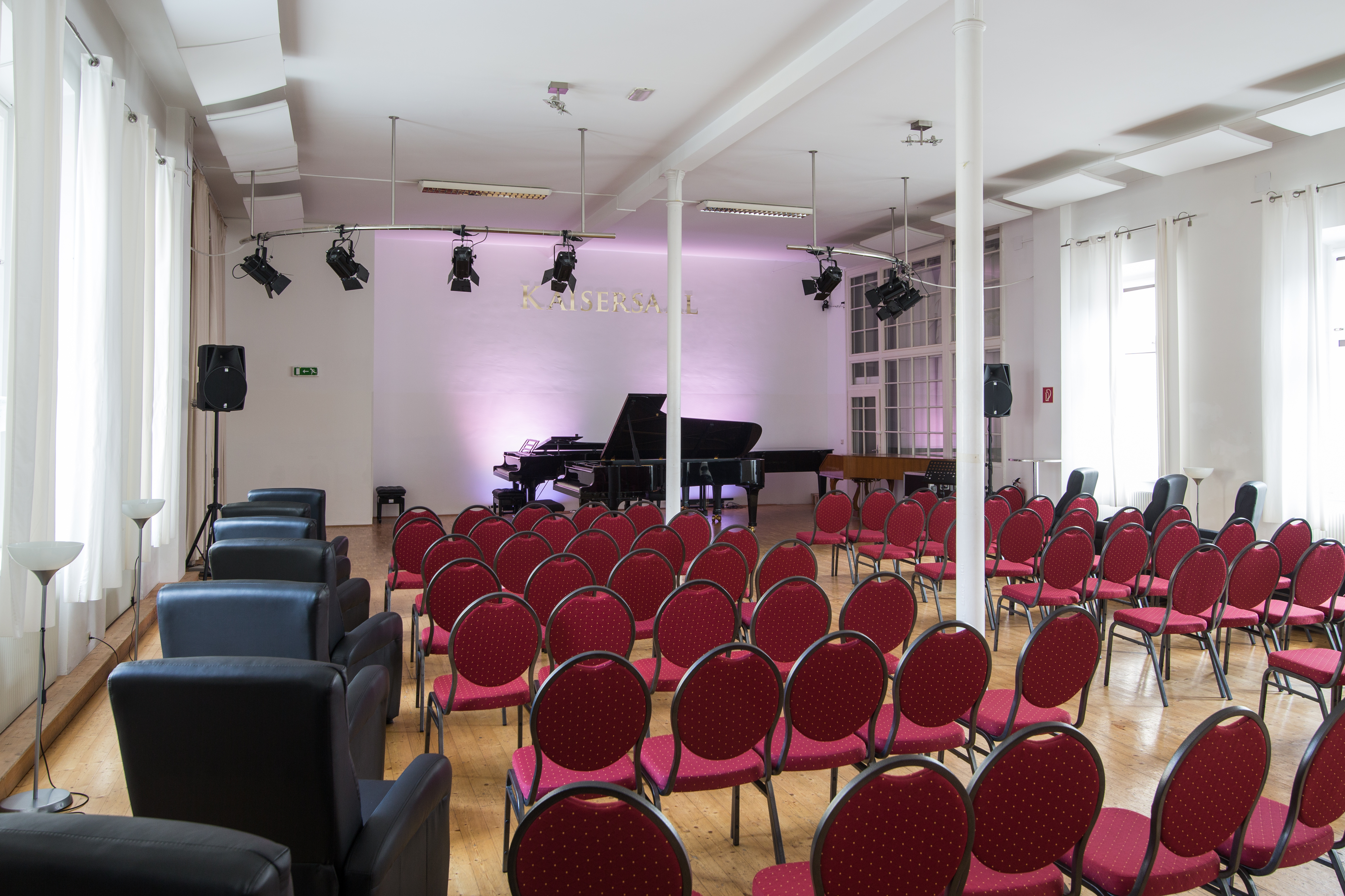 Außerdem stehen 21 Proberäume und ein Konzertsaal für das tägliche Proben, Unterrichten und Vorführen von Montag bis Sonntag von 9 bis 21 Uhr zur Verfügung.