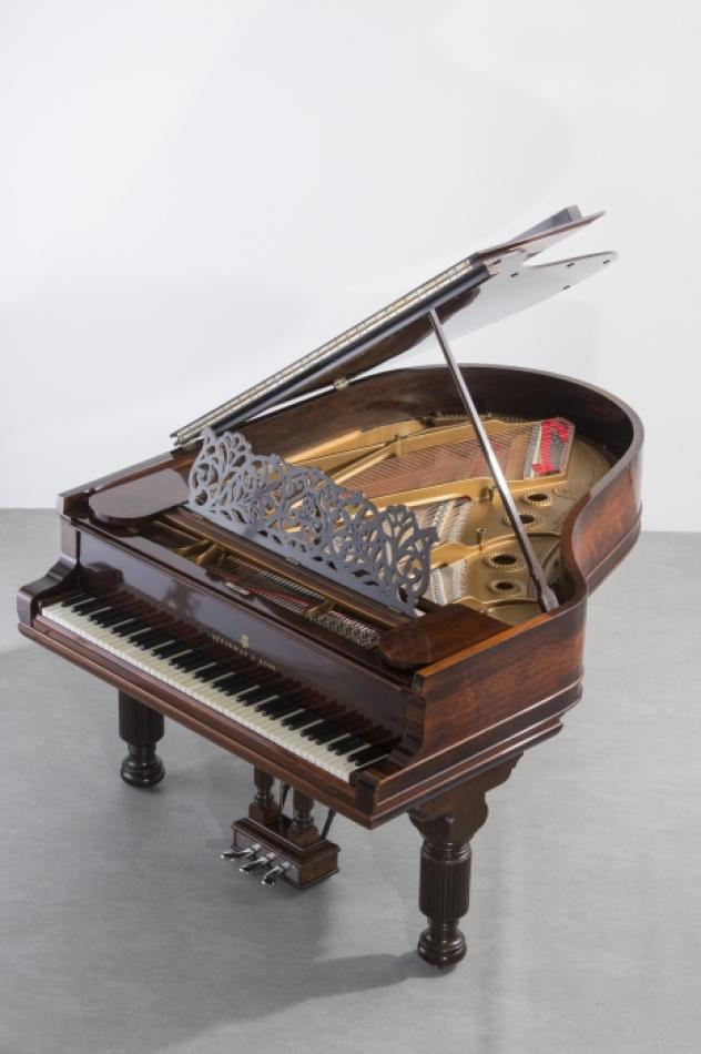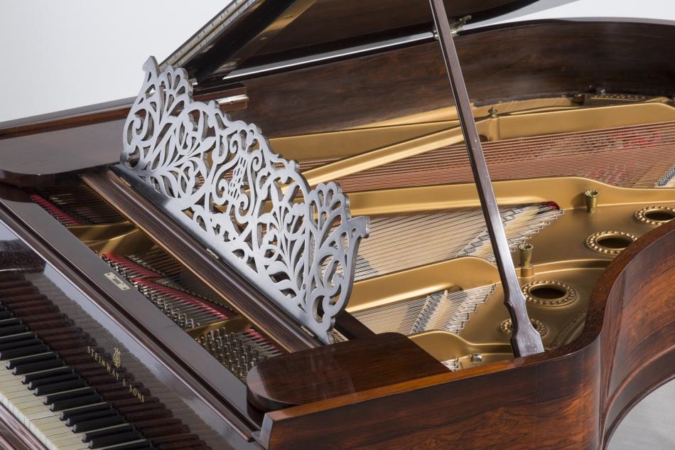 Dieser Flügel ist in unserer Meisterwerkstatt nach den Regeln der traditionellen Klavierbaukunst generalüberholt worden. Die Fotos zeigen ein besonders schönes und seltenes Stück. Der Flügel ist neu besaitet, neue Wirbel, der Boden geschliffen und lackiert, die Mechanik komplett überholt mit neuen Köpfen, Dämpfern und alle notwendigen Filze wurden getauscht.Der Flügel besitzt den typischen Steinway Klangcharakter mit dem zusätzlichen Klangspektrum des vorletzten Jahrhunderts. Lassen Sie sich bezaubern von diesem besonderen Meisterwerk aus den Händen von Steinway & Sons.