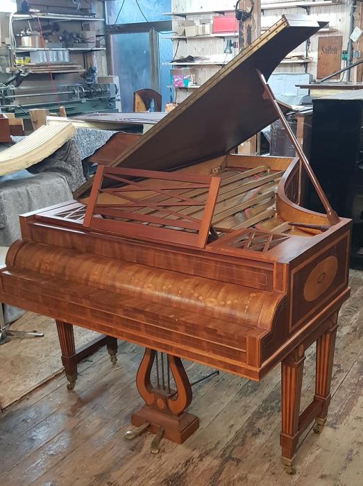 Weitere Informationen: Dieser von Erard Paris, im Jahre 1901/’02, hergestellte Flügel ist ein atemberaubendes Beispiel des „Adam“-Stils. Das Gehäuse ist Mahagoni furniert mit kunstvollen Intarsien aus Satinholz, Parallel bespannt. Der „Adam“-Stil (oder Adamesque und ""Stil der Brüder Adam"") ist ein neoklassizistischer Stil der Inneneinrichtung und Architektur des 18. Jahrhunderts, der von den schottischen Architekten Brüdern Robert, James und John Adam geprägt und nach ihnen benannt wurde.