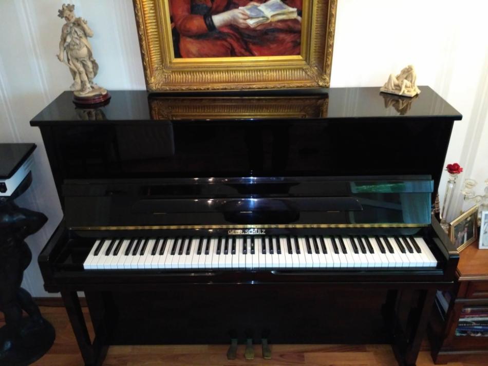 Wunderschönes klavier von der Marke Gebrüder SchulzE118,Serien nr.1912639,schwarz Lack...Das Klavier ist technisch und Äuserlich in einem sehr guten Zustand,praktisch wie neu.Es sehr wenig bespielt,vor kurzem von klavierbaumeister gestimmt,und als sehr gut eingeschetzt,beim spielen entfaltet das Klavier ein volles Klangspektrum. Der Transport ist auch ziemlich unkompliziert,weil das klavier sich im Erdgeschosswohnung befindet.Für weitere Fragen können Sie sich melden unter der Nr.01775521310