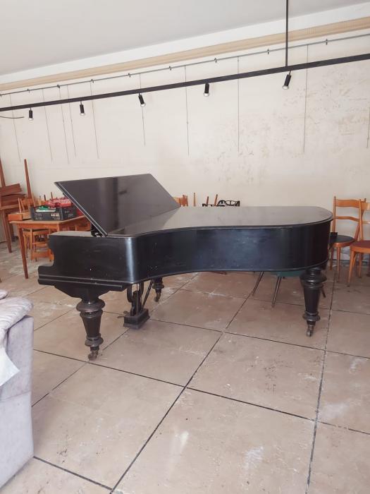 Schwarz matt, 2 m lang und 1,48 m breit, 2 Pedale, 52 weiße Tasten und 36 schwarze, Serien-Nr. 9196, Baujahr 1889, Gebraucht. Selbstabholung. Familienbesitz seit 1960